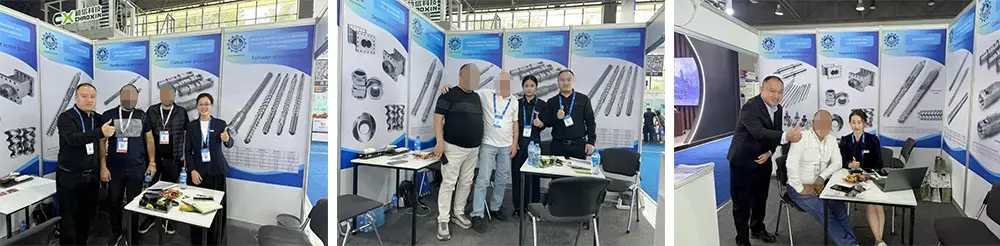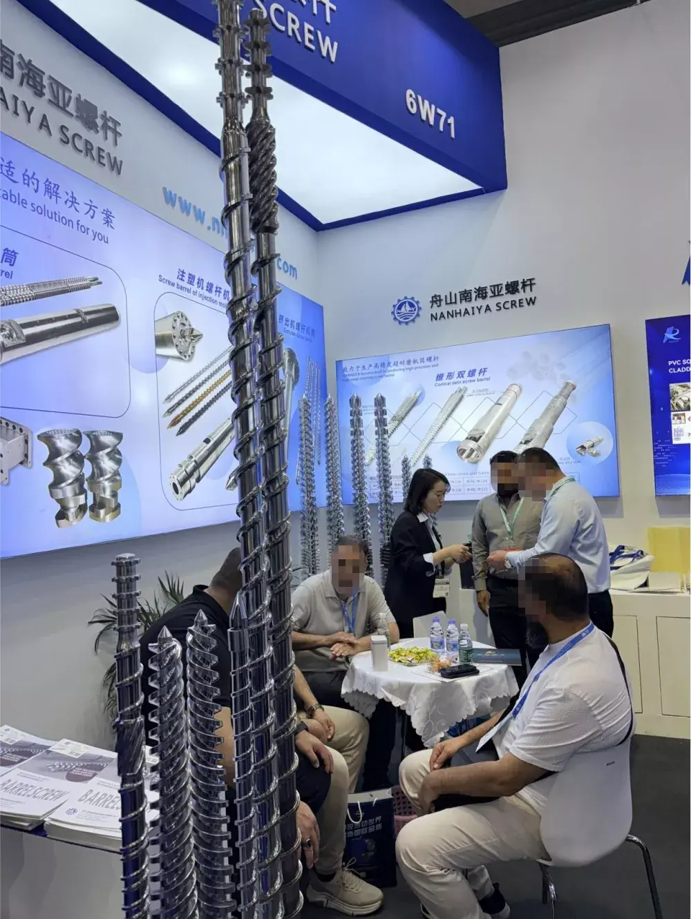 പ്രദർശനത്തിൽ, ദിഷൗഷൻ നൻഹയ്യബൂത്ത് സന്ദർശകരെക്കൊണ്ട് തിരക്കിലായിരുന്നു. എക്‌സിബിഷനിൽ അവതരിപ്പിച്ച സ്റ്റാർ ഉൽപ്പന്നങ്ങളായ ഡ്യുവൽ-അലോയ് സ്ക്രൂ, ബാരൽ, നൈട്രൈഡ് സ്ക്രൂ, ബാരൽ എന്നിവ വ്യാവസായിക മാനദണ്ഡങ്ങൾക്കപ്പുറമുള്ള പ്രകടന പാരാമീറ്ററുകൾ കൊണ്ട് വ്യാപകമായ ശ്രദ്ധ ആകർഷിച്ചു. നൻഹയ്യയുടെ എല്ലാ ഉൽപ്പന്നങ്ങളും 38CrMoAl അലോയ് സ്റ്റീലിൽ നിന്നാണ് നിർമ്മിച്ചിരിക്കുന്നത്, കൂടാതെ ക്വഞ്ചിംഗും ടെമ്പറിംഗ്, സ്വഭാവരൂപീകരണം, കൃത്യതയുള്ള മെഷീനിംഗ് എന്നിവയുൾപ്പെടെ ഒന്നിലധികം പ്രക്രിയകളിലൂടെയാണ് നിർമ്മിച്ചിരിക്കുന്നത്. പ്രത്യേകിച്ചും, ദുർബലമായ വിഭാഗമായ ബാരൽ ഡിസ്ചാർജ് പോർട്ട്, നൂതനമായ, പൂർണ്ണ-വൃത്താകൃതിയിലുള്ള കാർബൈഡ് സ്പ്രേ കോട്ടിംഗ് അവതരിപ്പിക്കുന്നു, ഇത് 62HRC യുടെ ആന്തരിക കാഠിന്യം കൈവരിക്കുന്നു, ഇത് വ്യവസായ ശരാശരിയായ 58HRC-യെക്കാൾ ഗണ്യമായ പുരോഗതിയാണ്.